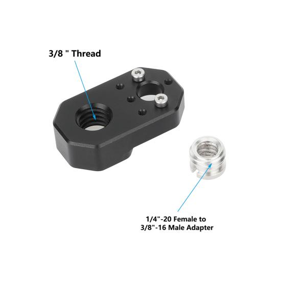 Product Highlights  • Multi-Purpose Cheese Plate • 1/4"-20 Camera Screw • 1/4"-20 Threads Spaced 9, 10, 11, 12mm Apart • 3/8"-16 Anti-Twist Accessory Mounts • Multiple Countersunk Mounting Slots • 1/4" Pass-Through Holes Spaced 18mm Apart • For DIY Accessory Configuration • Anodized Aluminum Alloy Product Description  This aluminum camera mount plate provides a rigid platform with a variety of mounting options for attaching accessories, such as shoe mounts, articulating arms, and more, to your camera, cage, or other supports or device. It features 1/4"-20 threads along the edge and surface, 3/8"-16 threads, as well as countersunk mounting slots that allow you to attach the plate to your camera or rig. The plate also features 3/8"-16 threads with anti-twist divots, allowing you to mount accessories with 3/8"-16 threaded studs with or without ARRI-compatible anti-twist pins. Net Weight: 218 g Package Included:  1 x Camera Mount  Plate with 3/8"-16 ARRI Accessory Threads 1 x 1/4"-20 Captive Screw 2 x 1/4"-20 Fully Threaded Allen Screw 1 x Allen Wrench