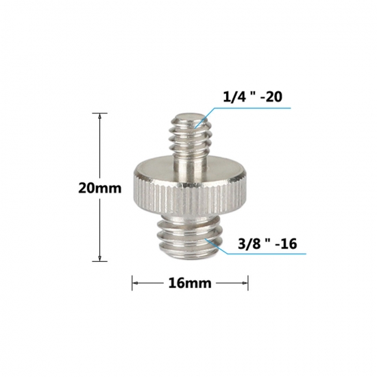 • 1/4"-20 male to 3/8"-16 male thread (20mm long)