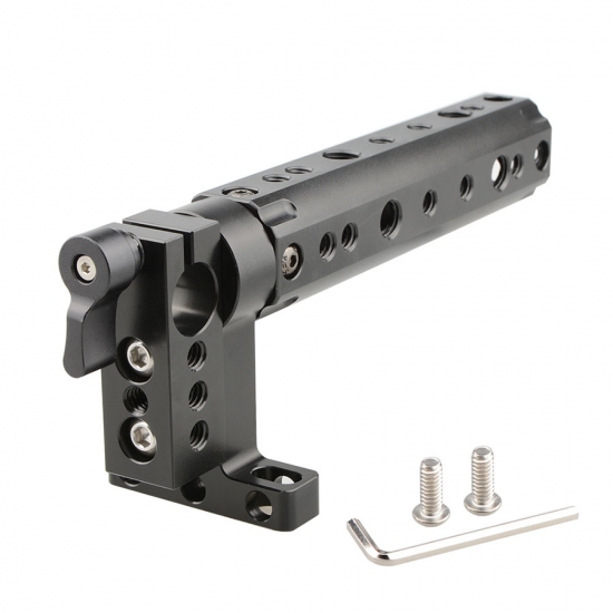 • It features plenty of 1/4''-20 and 3/8”-16 mounting holes for various configurations. A single 15mm rod clamp with integrated to the back of the handle for rod extension, compatible with any 15mm rod.