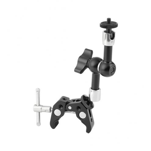 Multi-function Mounting Bracket comes with an Articulating Arm and a Super Clamp Crab, it can be quickly and easily mount on a supporting object like cameras, lights, umbrellas, hooks, shelves, crossbars, even other Super Clamps. It also attaching accessories via 1/4" thread hole, such as LCD monitor, articulating arm, rod clamp, flashlight, video light, and so on.