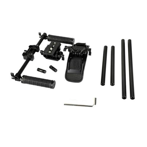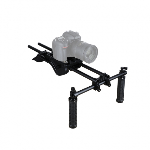• This shoulder mount rig features to improve the stability of your handheld shots by adding a shoulder pad and dual handgrips to your camera setup. Whether you're shooting with small HDSLR cameras or larger camcorders, it provides the support and versatility to fit your needs.